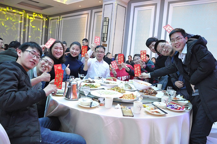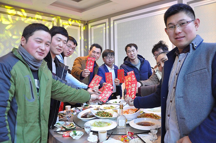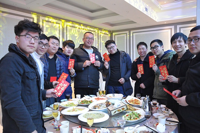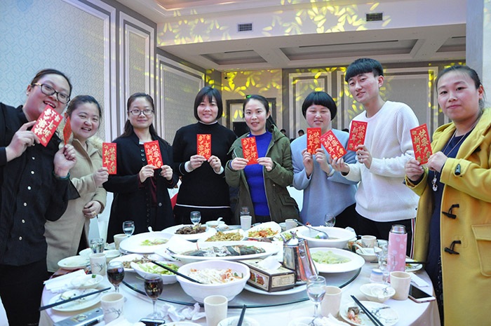 (董事長為集團(tuán)家人們一一送達(dá)新春祝福并發(fā)放紅包)